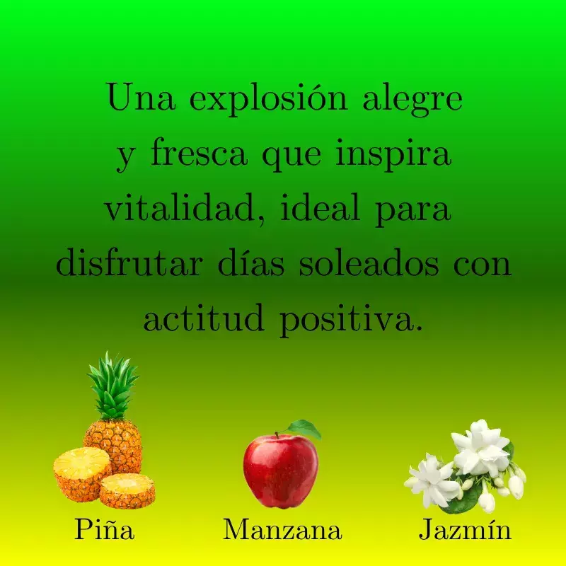 ☀️ Alegre, fresco y optimista: una fragancia que captura el espíritu vibrante y positivo del hombre moderno.